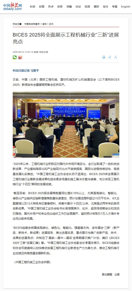 日前,中國(北京)國際工程機械、建材機械及礦山機械展覽會(以下簡稱BICES 2025)新聞發布會暨展商預備會在京召開。